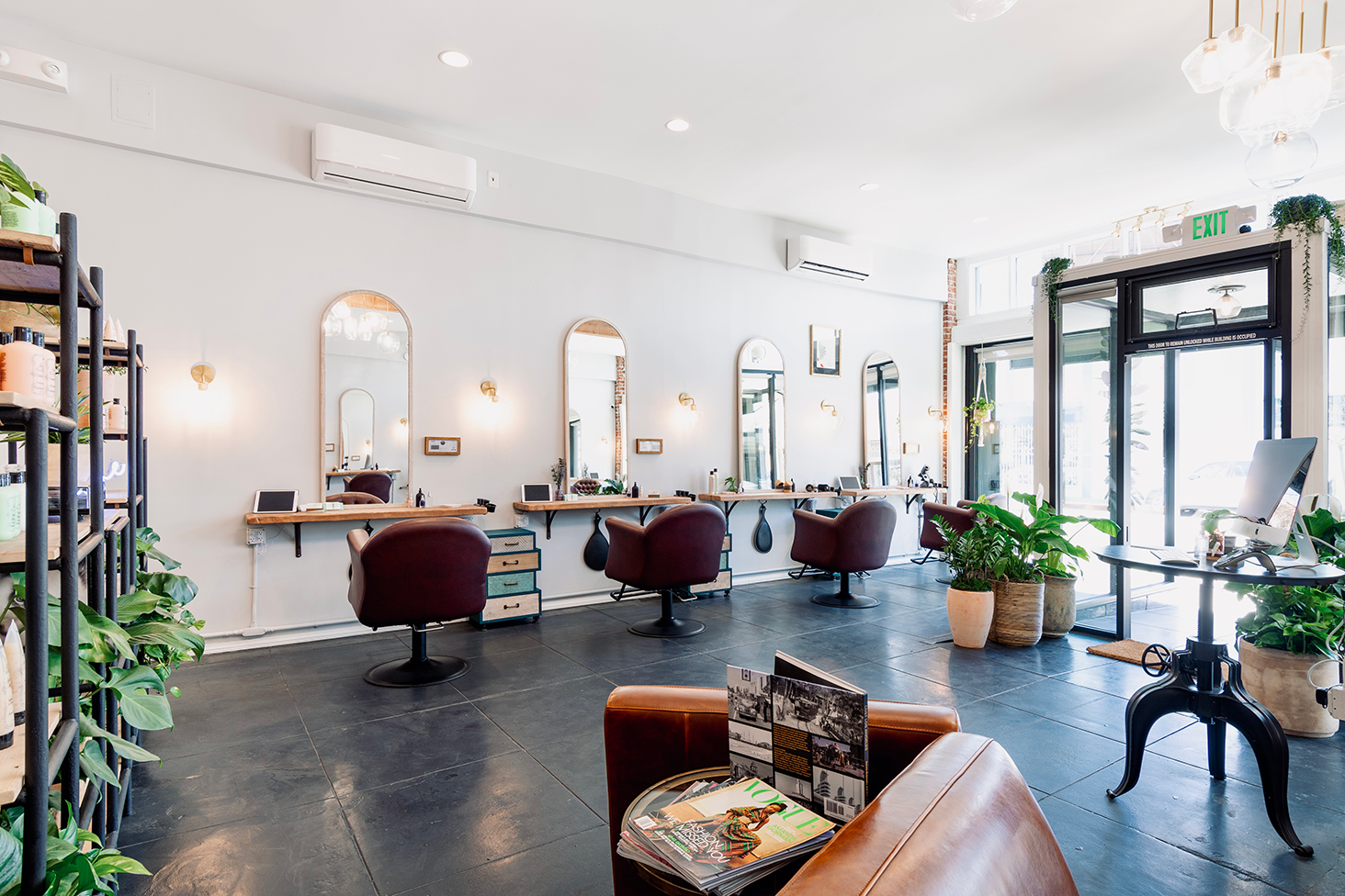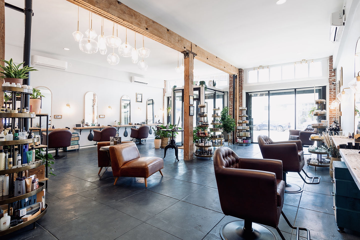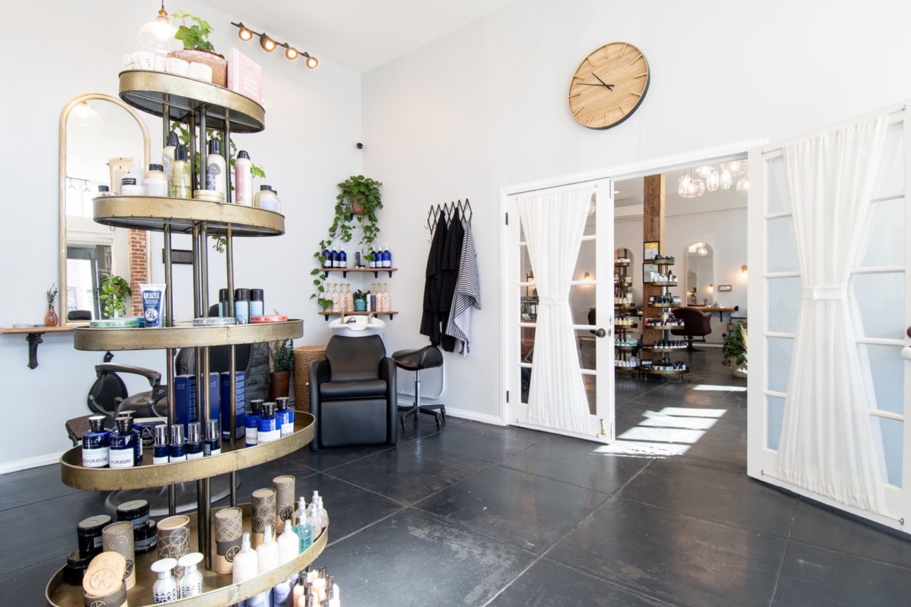 Our beautiful salon entrance and styling station. Private and spacious, with rehabbed warm wood ...